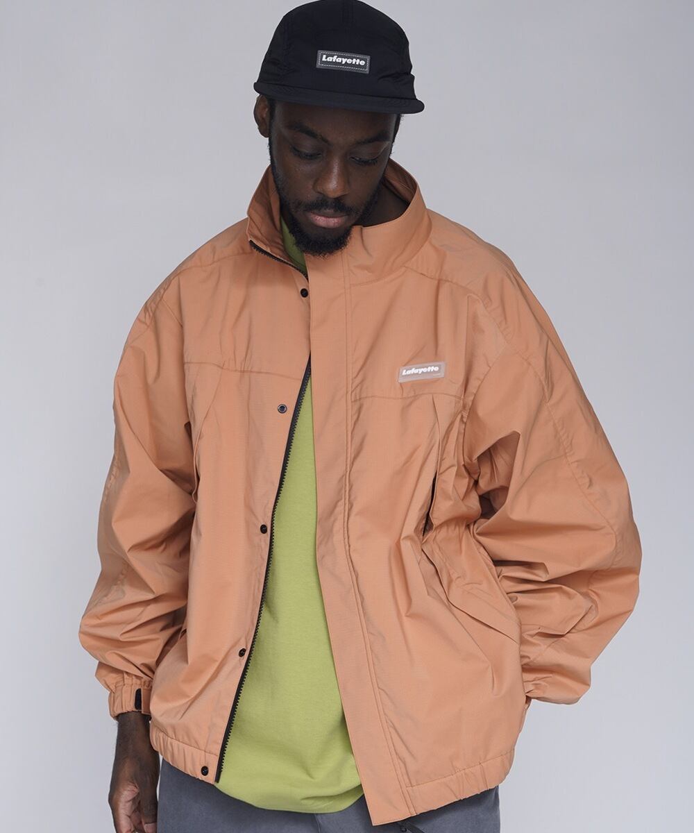 身幅に余裕を持たせたボックスシルエットで、背面に裾部分を絞れるベロクロ仕様のアジャスターを付属し、