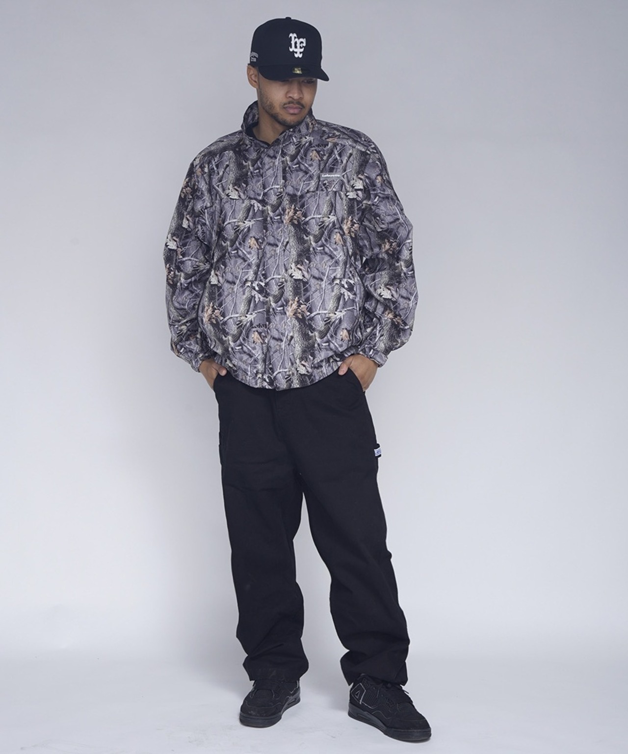 身幅に余裕を持たせたボックスシルエットで、背面に裾部分を絞れるベロクロ仕様のアジャスターを付属し、