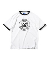ニューヨークの地下鉄で過去に使われていた代用通貨「TOKEN COIN」をシンプルに落とし込んだリンガーTシャツ。