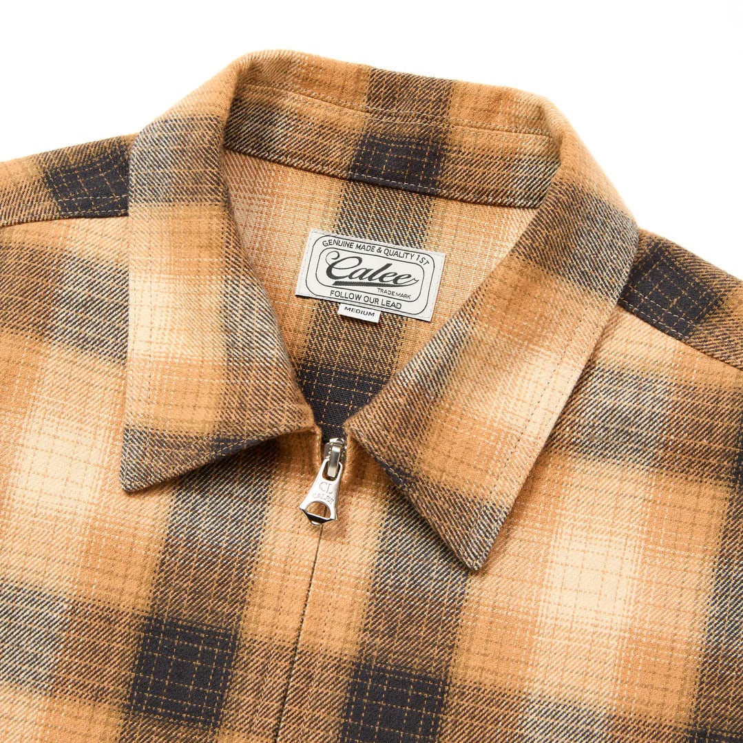 オンブレーチェックスウィングトップ。新潟県長岡市の栃尾産地にて製作した、4色の色糸を使用したオリジナルオンブレーチェック生地を採用。太番手の8番単糸を2/2綾織りと呼ばれる経緯二本ずつで織り上げ、表面を薄く起毛加工を施している。身幅にゆとりを持たせたショート丈シルエット。