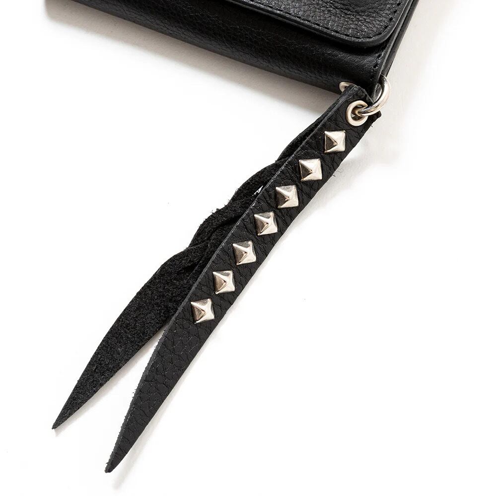 シボ感あるプレーンレザーにスタッズチャームを施して作製された3つ折りウォレット。レザーは使い込む程にシボが消え、艶感ある経年変化を楽しむ事が出来る。また、収納もしっかりと確保し、使い勝手の良いウォレットに仕上がっている。