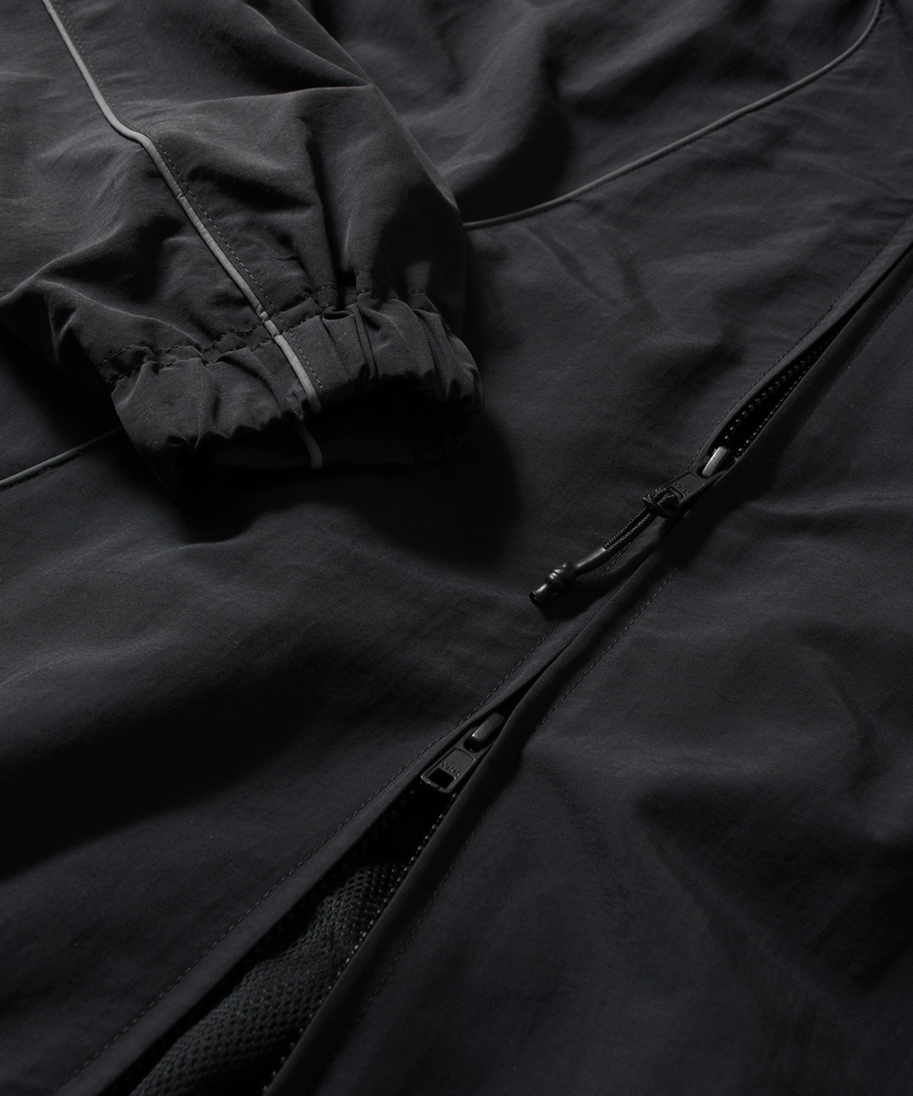 背面にはベンチレーション、襟部分には収納可能なフードも付属し、機能性も充実。