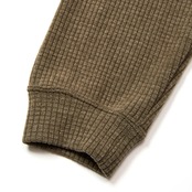 ワッフルL/Sカットソー。吸湿発熱性、保温性があり、湿気もコントロールし、蒸れにくい機能素材を採用。起毛加工により肌触りも良いのが特徴。ドロップショルダーワイドシルエット。フロント左胸に刺繍が入る。