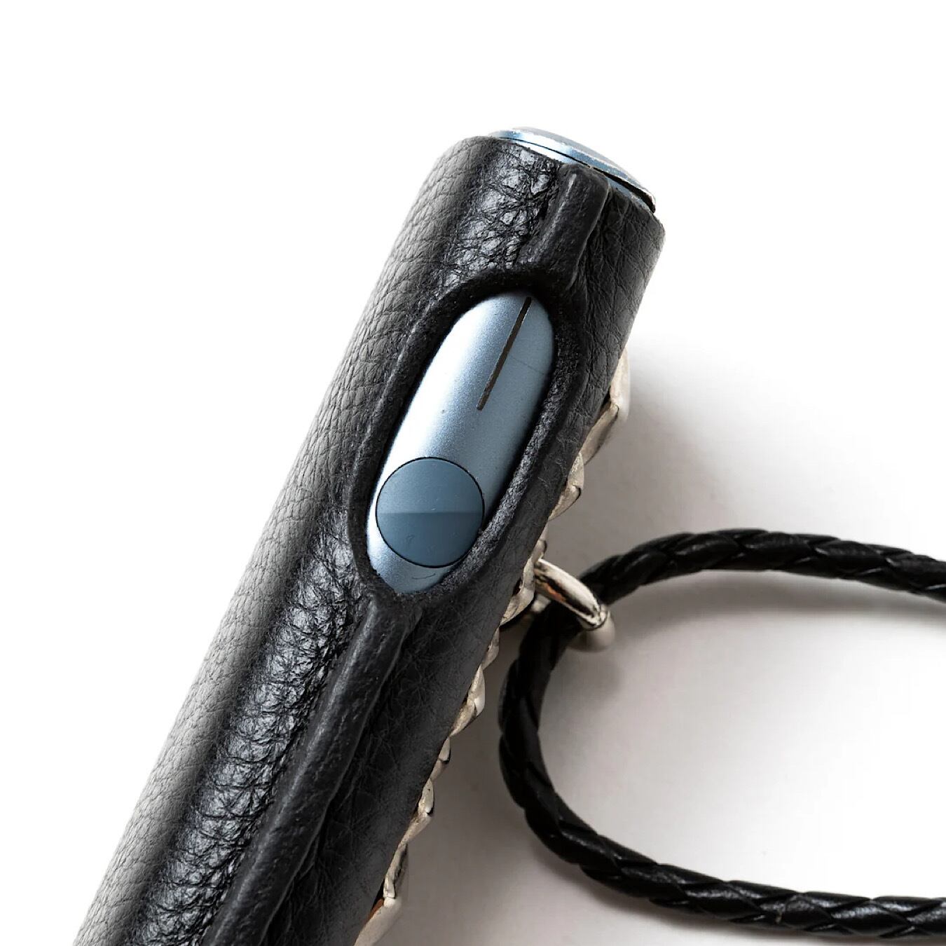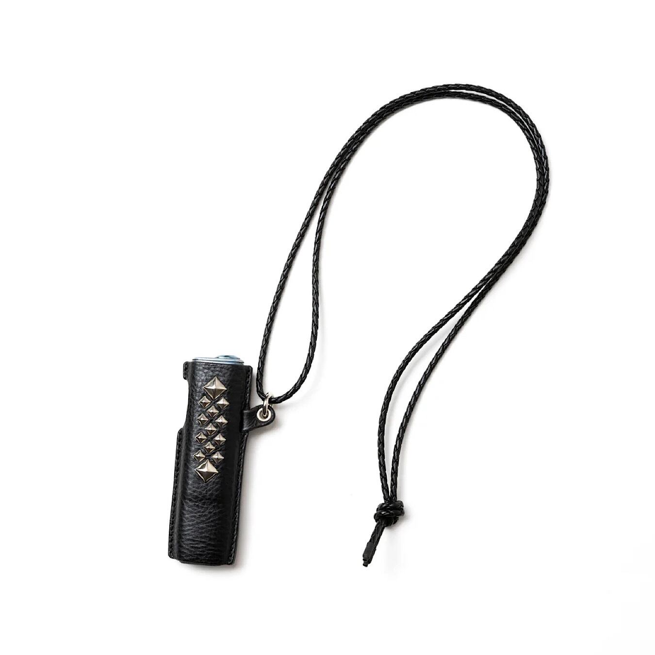 スタッズレザー作製された『iQOS イルマ ワン』ケース。イタリア、トスカーナ地方にて、 職人の手により1枚1枚丁寧に手鞣し、手染めされたイタリアを代表する最高級ハンドメイドレザー、アリゾナレザーを採用。革本来のナチュラルな風合いとシボが特徴。正面にピラミッドスタッズを配し、裏側にはブランドネームの刻印が入る。レザーネックストラップ付き。