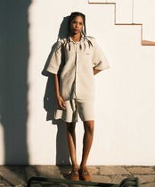 やや深めの股上とゆとりのある腰回りに対し、股下は短めで膝丈ほどのバランスに設計。