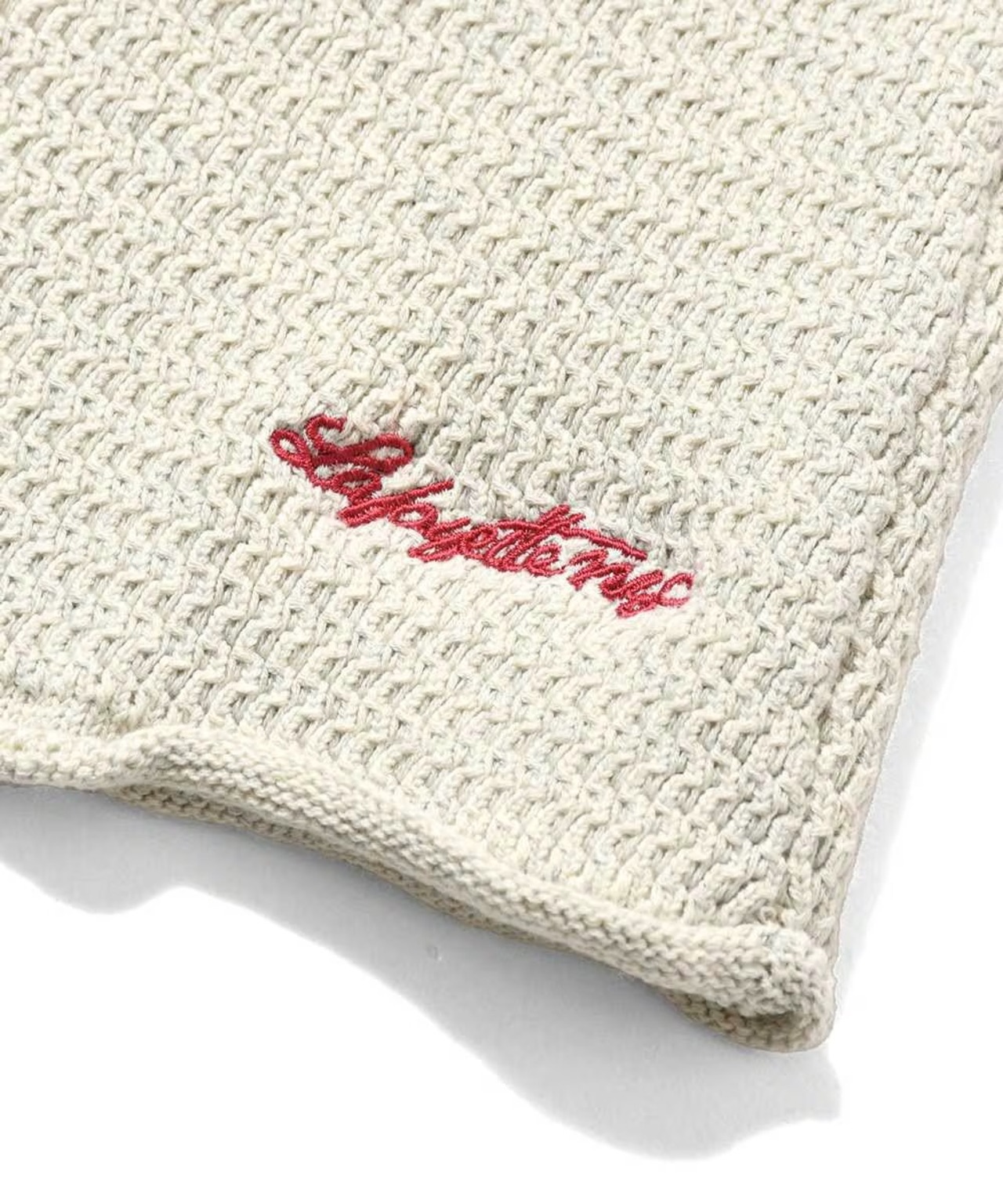 裾には筆記体調の「Lafayette NYC」ロゴ刺繍を配置し、右側にはバックポケットを付属。