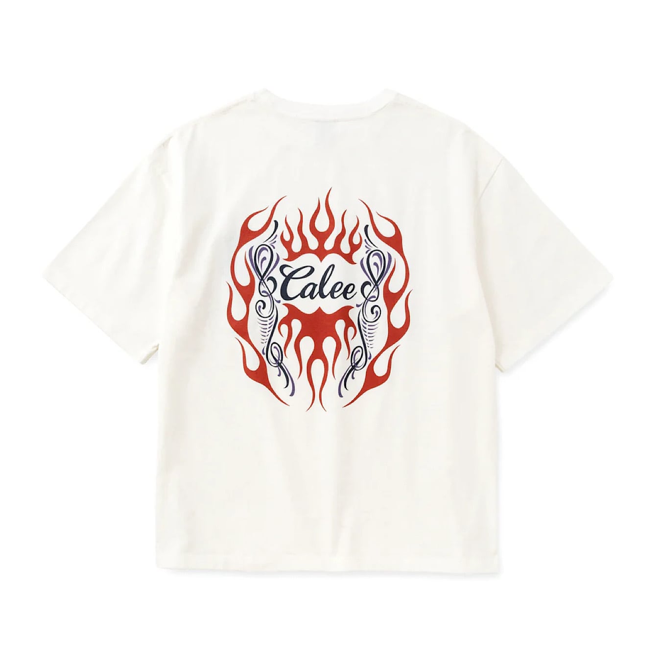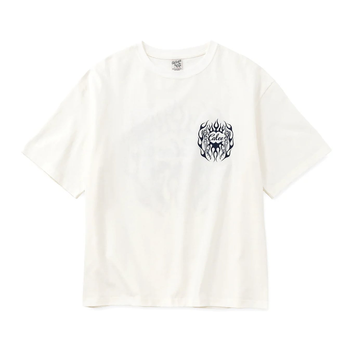 【CALEE】VINTAGE TYPE FLAME LOGO PINSTRIPING S/ S TEE <NATURALLY PAINT DESIGN>(WHITE)