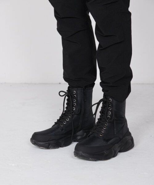 ブランド20年目にしてブーツのNEWモデルがついに登場。今期モデルはレザーではなく敢えて高密度ナイロンを使用し、アウトソールはスニーカーのようなデザインを採用。クッション性とスタイリッシュ性を共存させました。ミリタリーブーツをベースにアーバンな要素を取り入れたハイブリットなデザインに仕上げられた一足。今シーズン外すことのできない必須限定アイテムです。■素材・かなり目の細かい高密度ナイロンを採用■ディティール・超軽量のスニーカーのようなクッション性も兼ね備えたオリジナルアウトソール・アウトサイドにはサークル型のブランドロゴを同系色でドロップ・インサイドにはジップも搭載し着脱も容易な仕様に・バックには漢字ロゴを落とし込んだオリジナルリボンテープ■シルエット・ミリタリーブーツをベースにした10ホールのシルエット