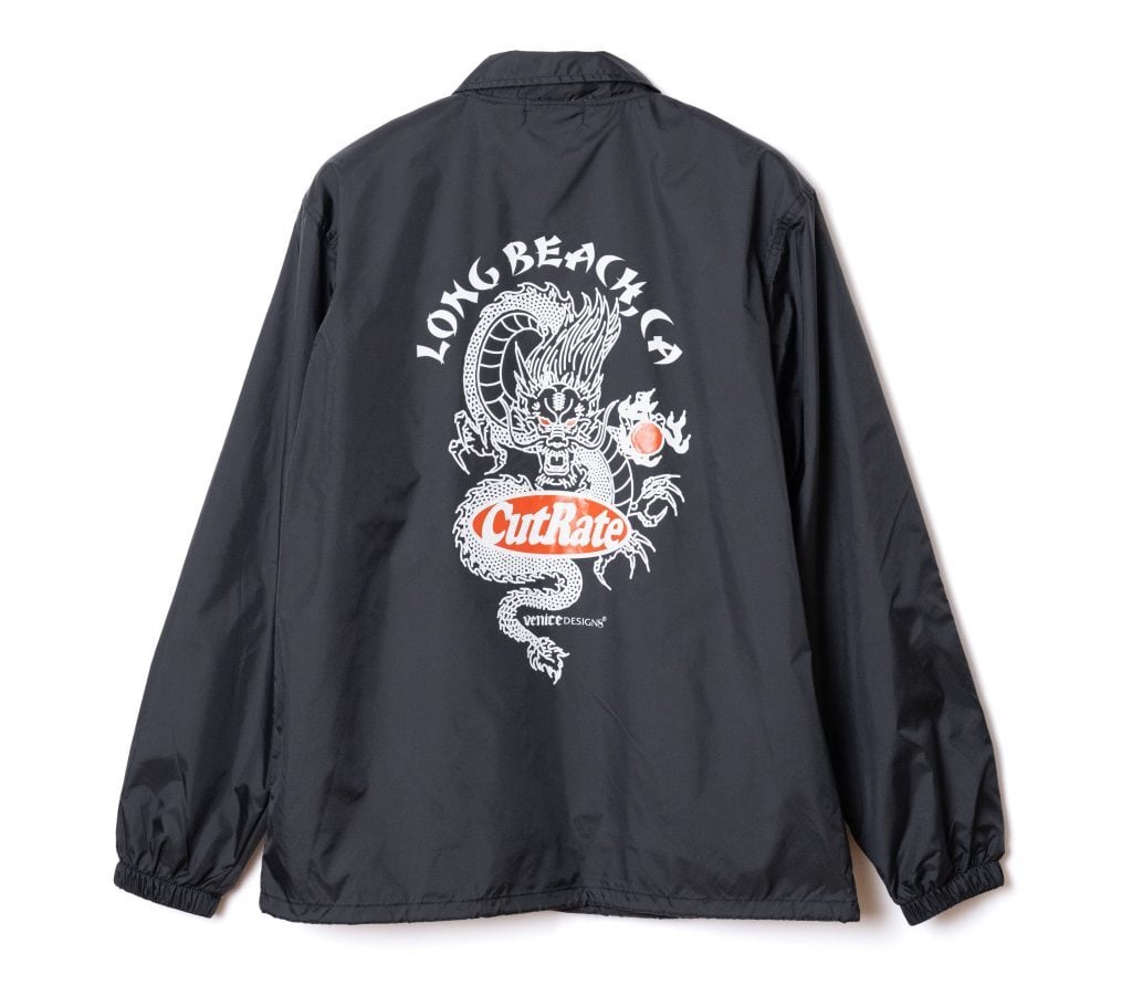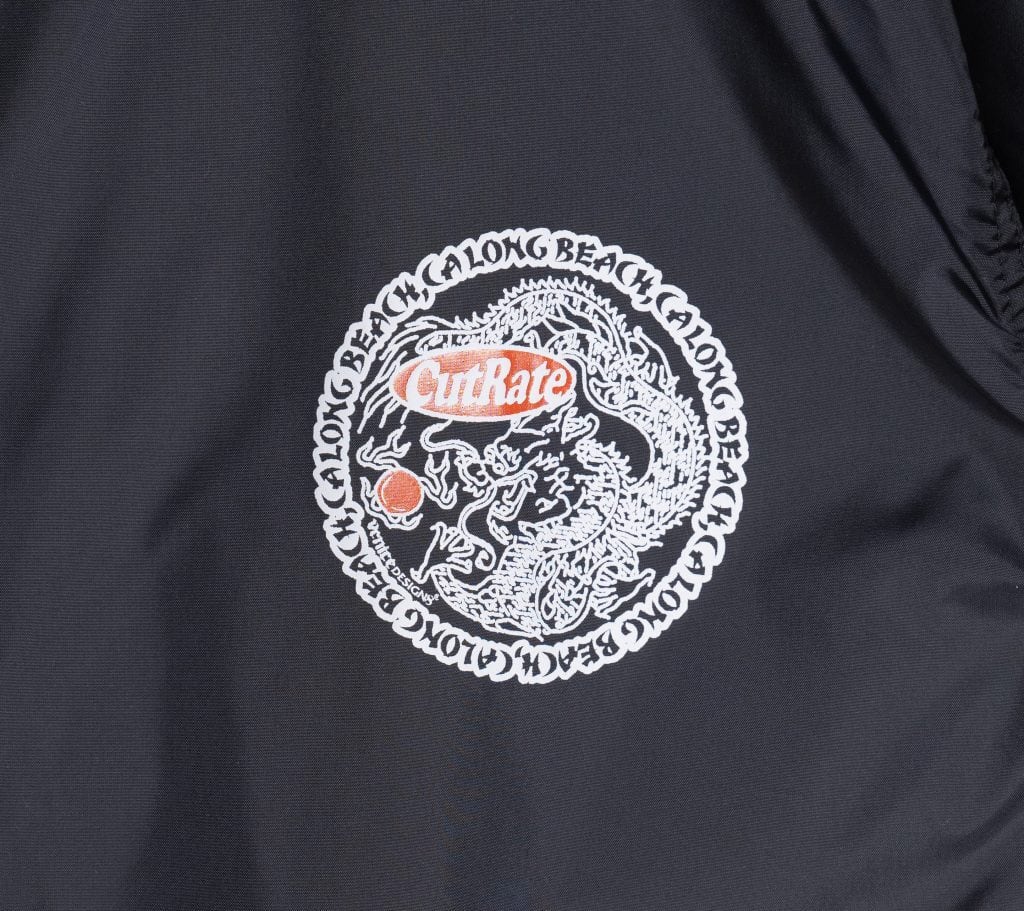 ×VENICE8 COFFEE HOUSEにデザイン製作を依頼したナイロンコーチジャケット。干支をイメージさせるドラゴンをスーベニア風なアメリカンポップなグラフィックに落とし込んだデザイン。