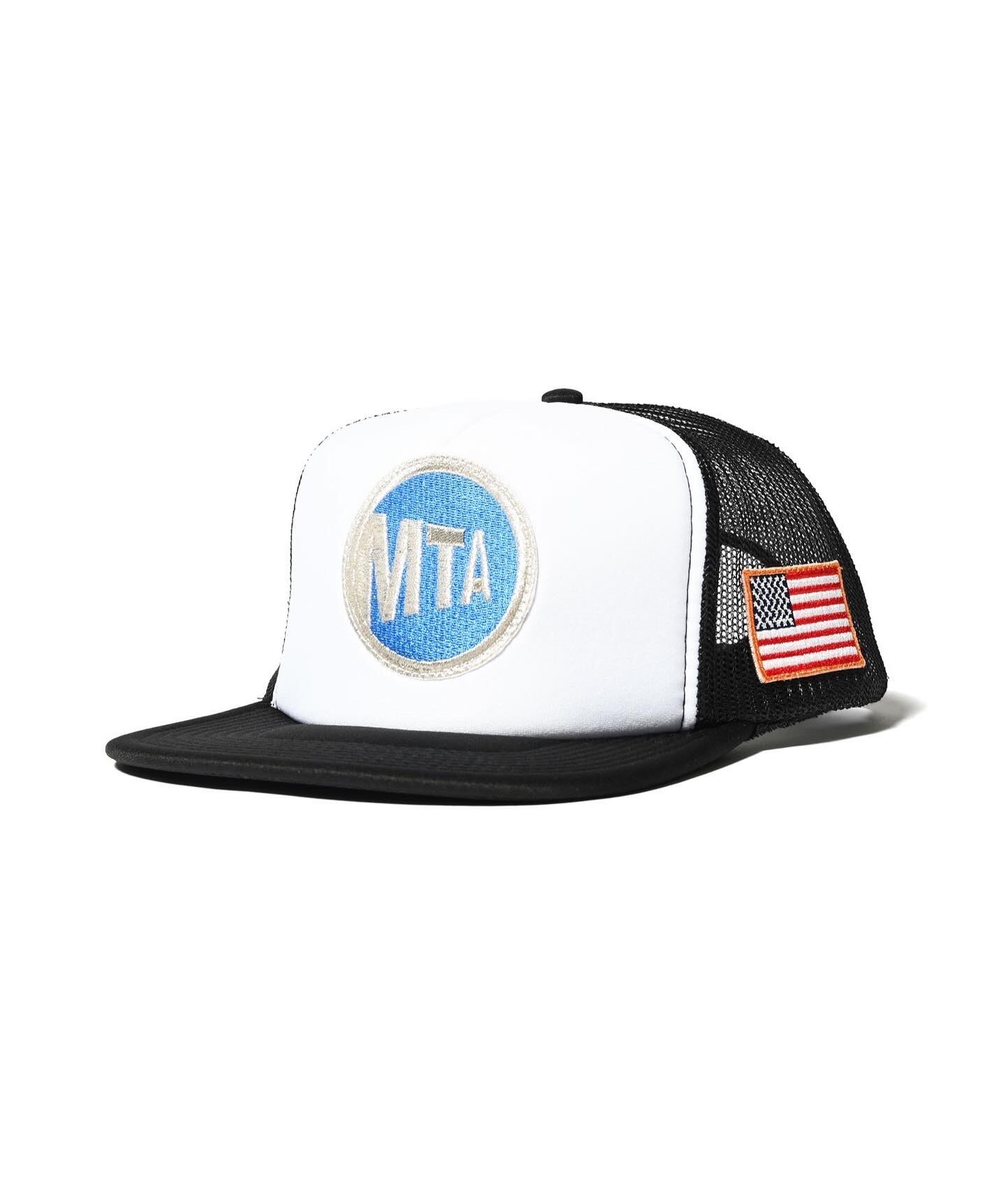 フロントにMTAオフィシャルロゴのワッペン、サイドに星条旗ワッペンが施されたトラッカーキャップ。
