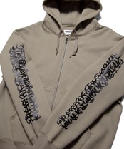 大阪のグラフィティライター"CASPER"描き下ろしのロゴをプリントで落とし込んだジップフーディ。