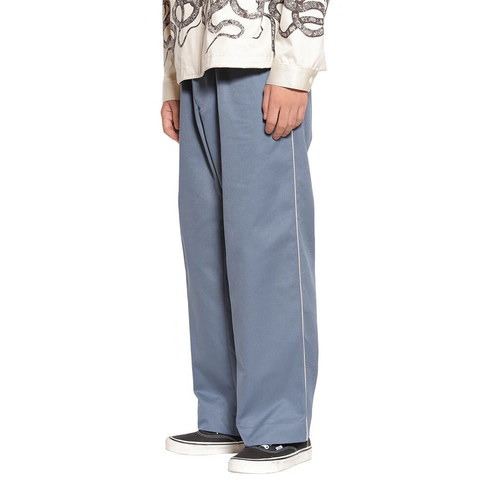 サイドラインタックスラックス。T/Cチノを採用し、サイドにパイピングを施した、ワイドシルエットの2タックスラックス。