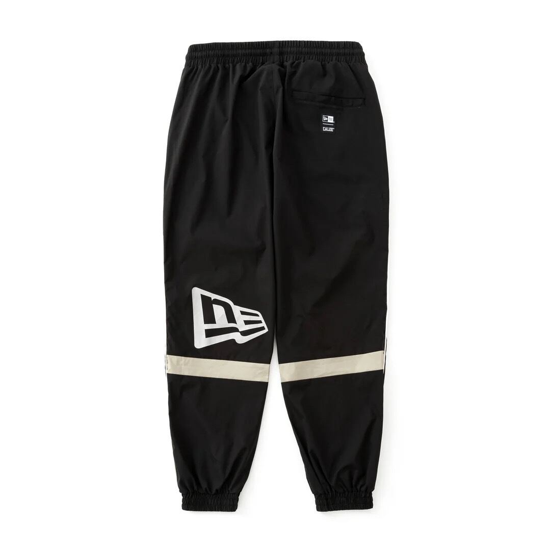 1920年に創設したMLB唯一の公式プレイヤー用CAPのオフィシャルサプライヤーとしてスタートしたブランド”NEW ERA”とのコラボレートアイテム。ストレッチの効いたポリエステル素材で動きやすく軽やかな仕上がりのトラックパンツ。ゆとりのあるシルエットで裾口はシャーリング仕様。 サイドはパイピングデザインを落とし込み、フロントには"NEWERA"のフラッグロゴとCALEEのブランドネームが刺繍が入るデザイン。背面には"NEWERA"のフラッグロゴがリフレクタープリントで入る。