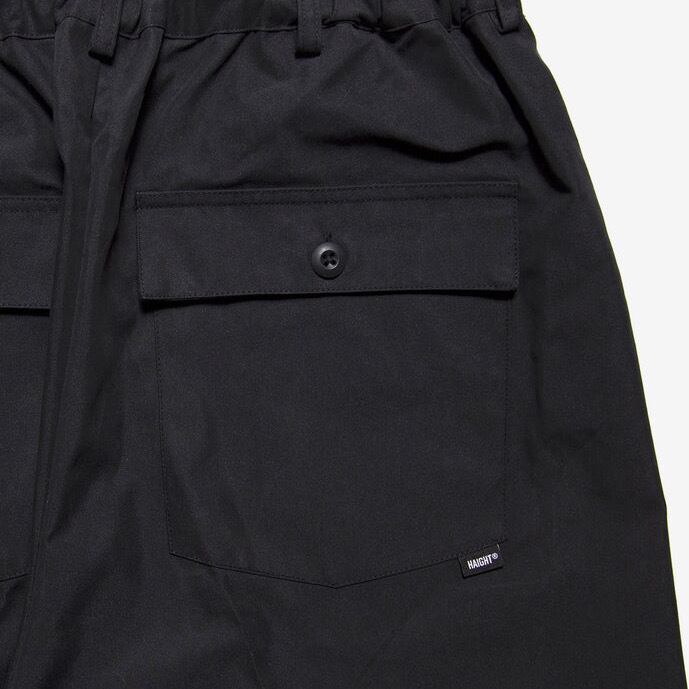 深めの股上にワタリ幅を広めにとったブランドオリジナルのシルエット。ヌメ感のあるコットンポリの生地がシャープさをプラスする。